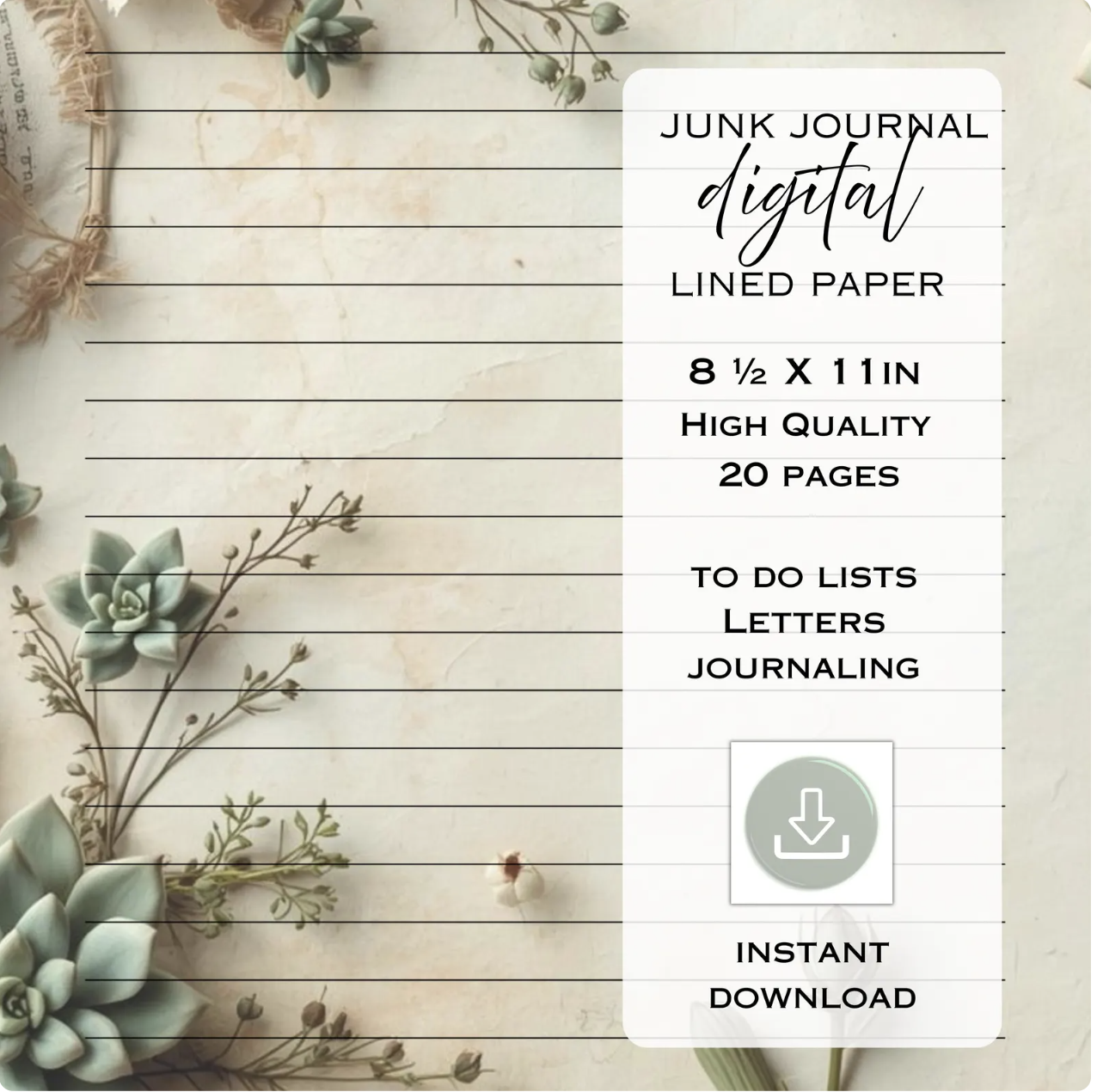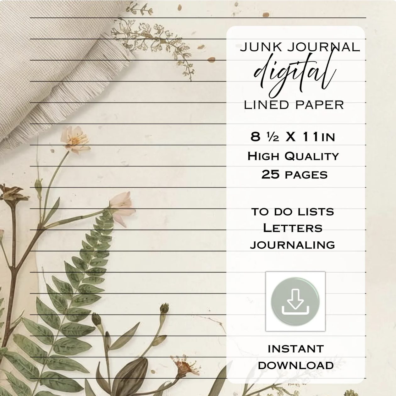 Whether you’re creating a full junk journal or adding a few thoughtful pages to a creative project, shabby chic fern and floral lined pages offer a timeless, calming canvas—inviting you to slow down, write, and create with intention.