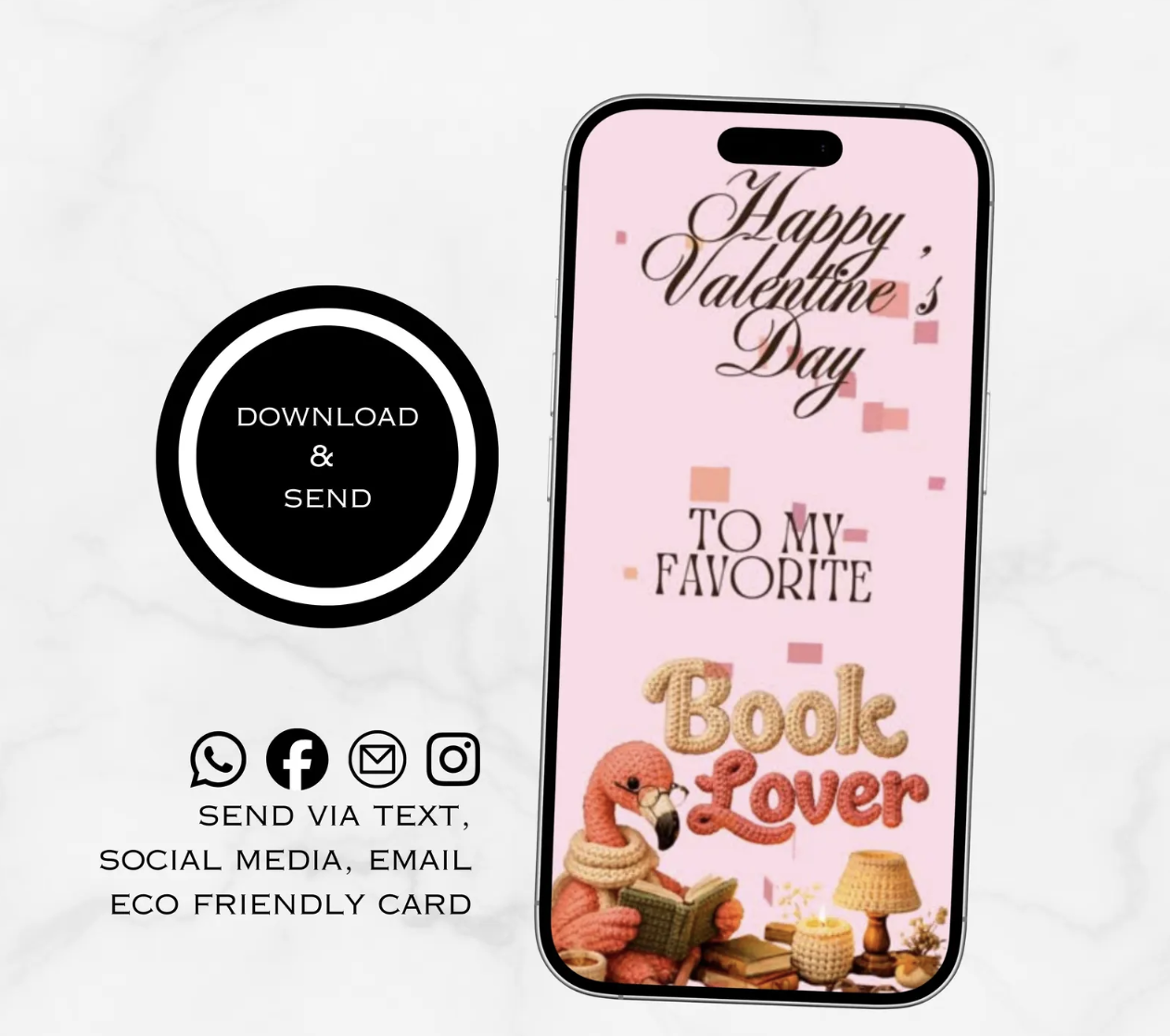 This flamingo Valentine started as a personal project inspired by my mom—she loves flamingos and books, so blending the two felt like the perfect creative challenge. I wanted the design to feel joyful, cozy, and a little whimsical, with strong bookish Valentine vibes.