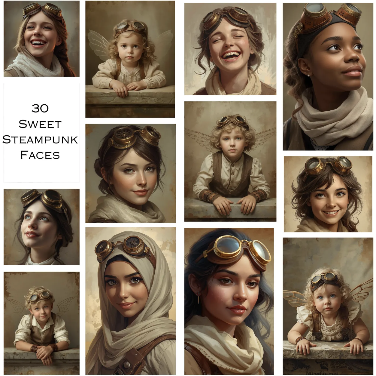 When I started creating my Steampunk Sweet Faces collection, I wanted each portrait to feel like it held a story — like you could almost hear the ticking of tiny gears behind their thoughtful expressions.
