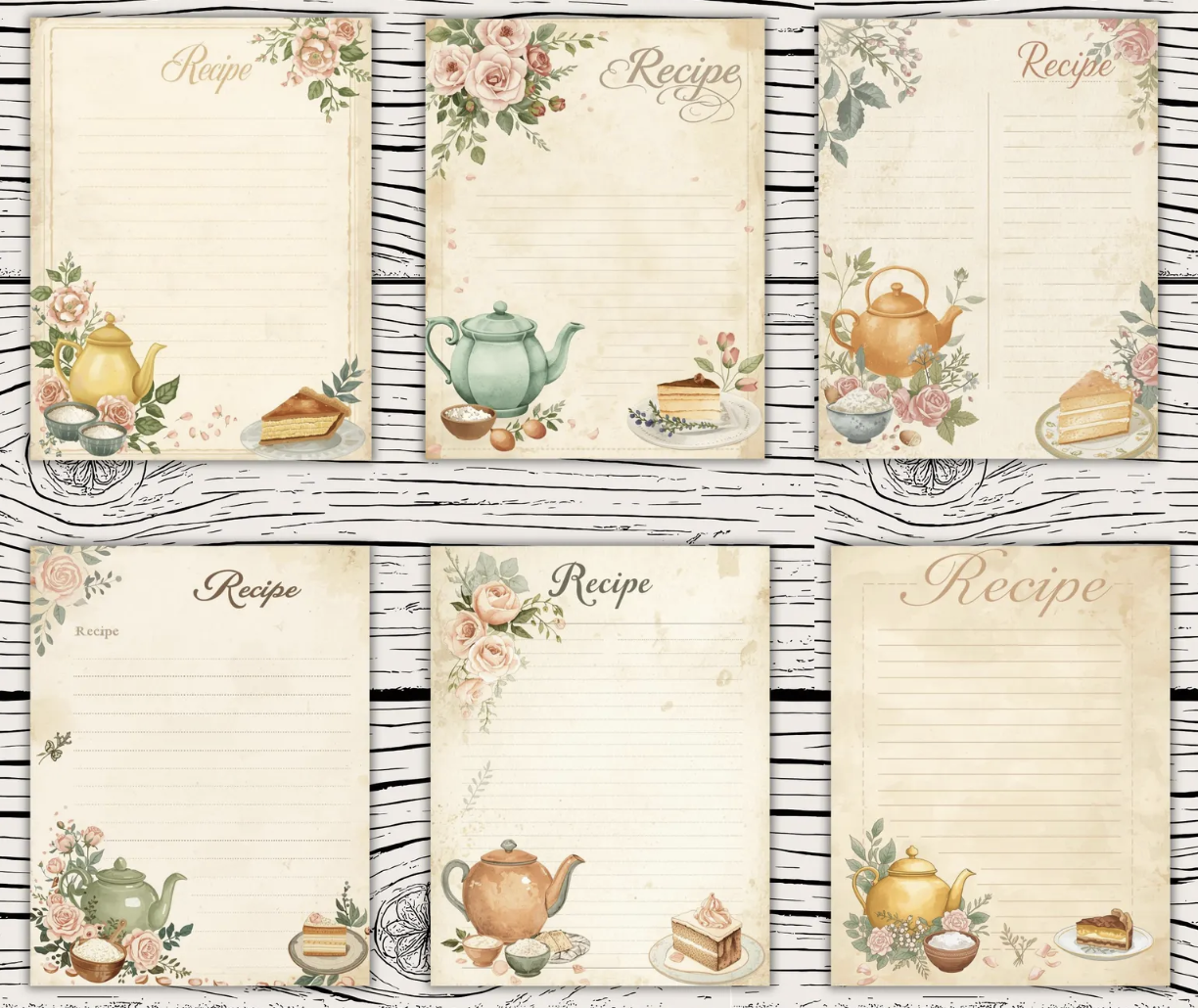 I designed this recipe paper to feel cozy and familiar, like the kind of pages you’d find tucked inside an old family cookbook. The soft florals, aged paper look, and generous writing space make it easy to jot down ingredients, steps, little tips, and even memories. It’s perfect for recording grandma’s classics, meals you cook with your kids, or new recipes you want to make your own.