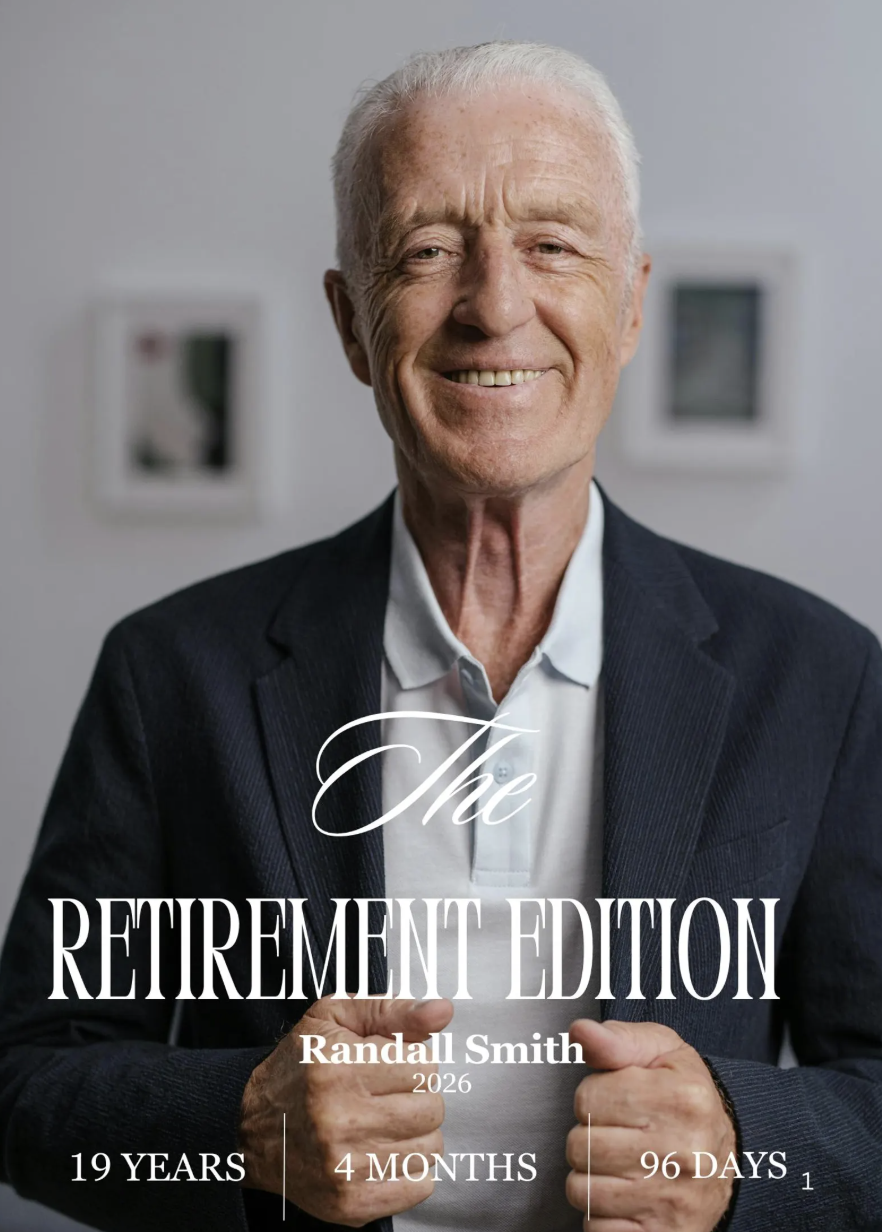 I designed the sign with a clean, minimalist aesthetic so the numbers could speak for themselves. The goal was timeless and modern, something that works just as well at a retirement party as it does framed in an office or home. Making the sign fully editable was important too—retirement is personal, and the ability to customize names, dates, wording, and fonts allows the design to reflect the individual being honored.